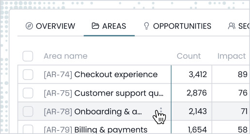 Crie uma base compartilhada para CX, Produto e Operações com uma visão consistente do feedback, dos problemas e das oportunidades dos clientes em toda a empresa.