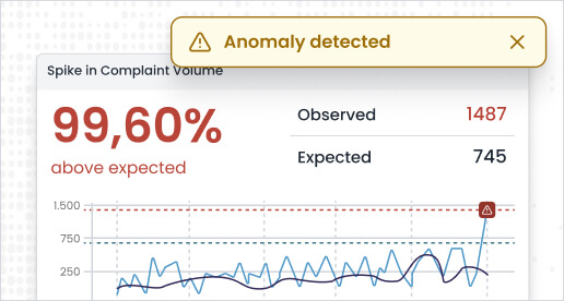 Monitore continuamente os sinais do cliente e receba resumos ou alertas automatizados quando novos problemas surgirem, os problemas aumentarem ou quando anomalias e picos forem detectados.