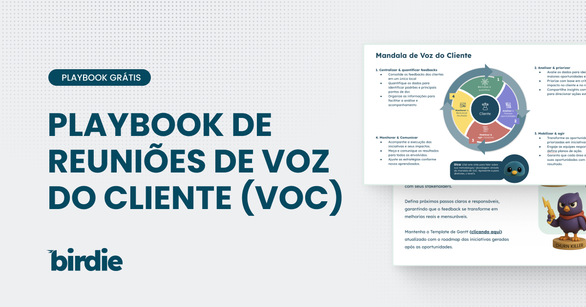 Desenvolvido para reuniões mensais de Voz do Cliente que realmente movem o ponteiro, este playbook permite que você: